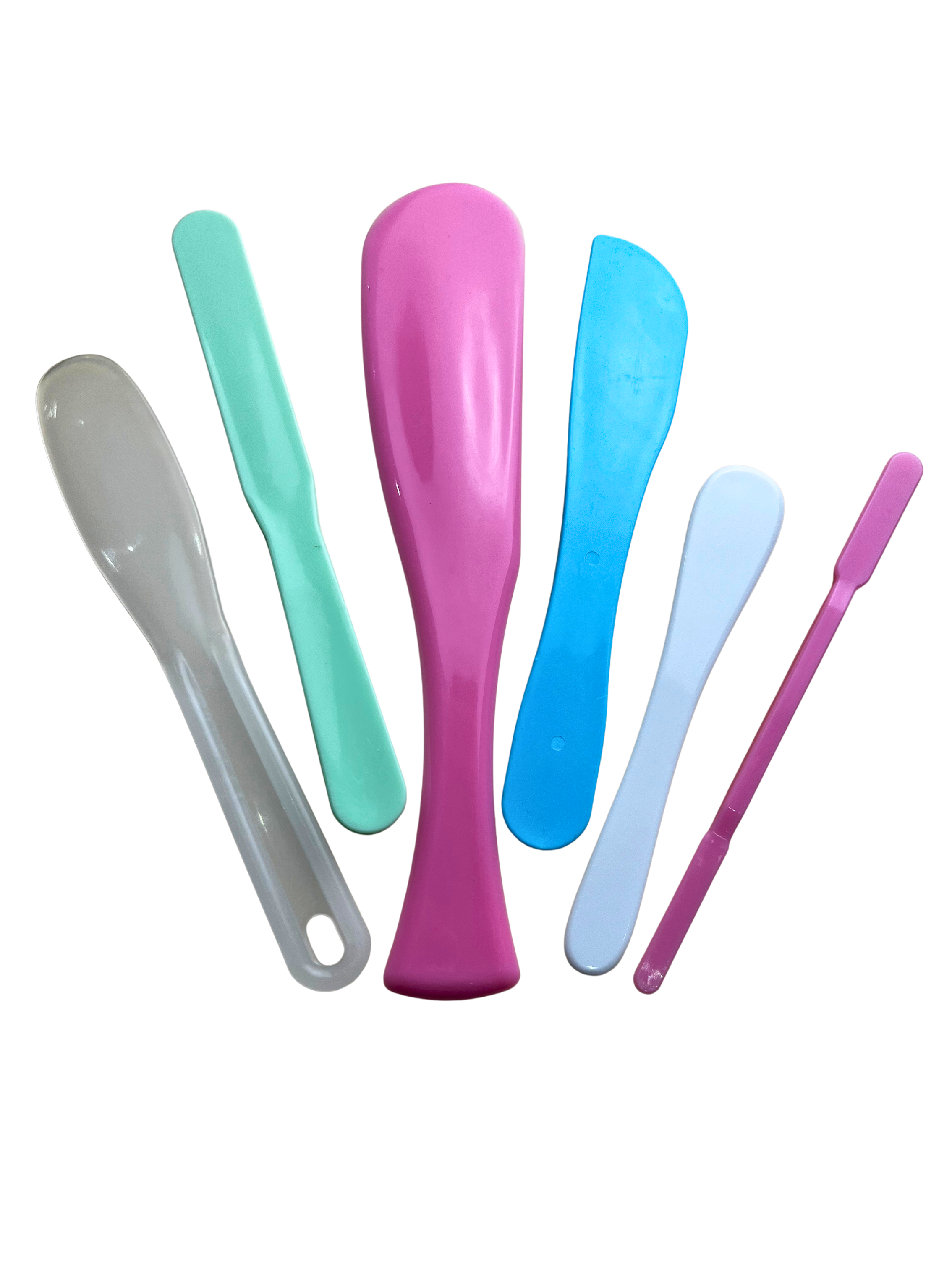 Conjunto de seis espátulas plásticas.