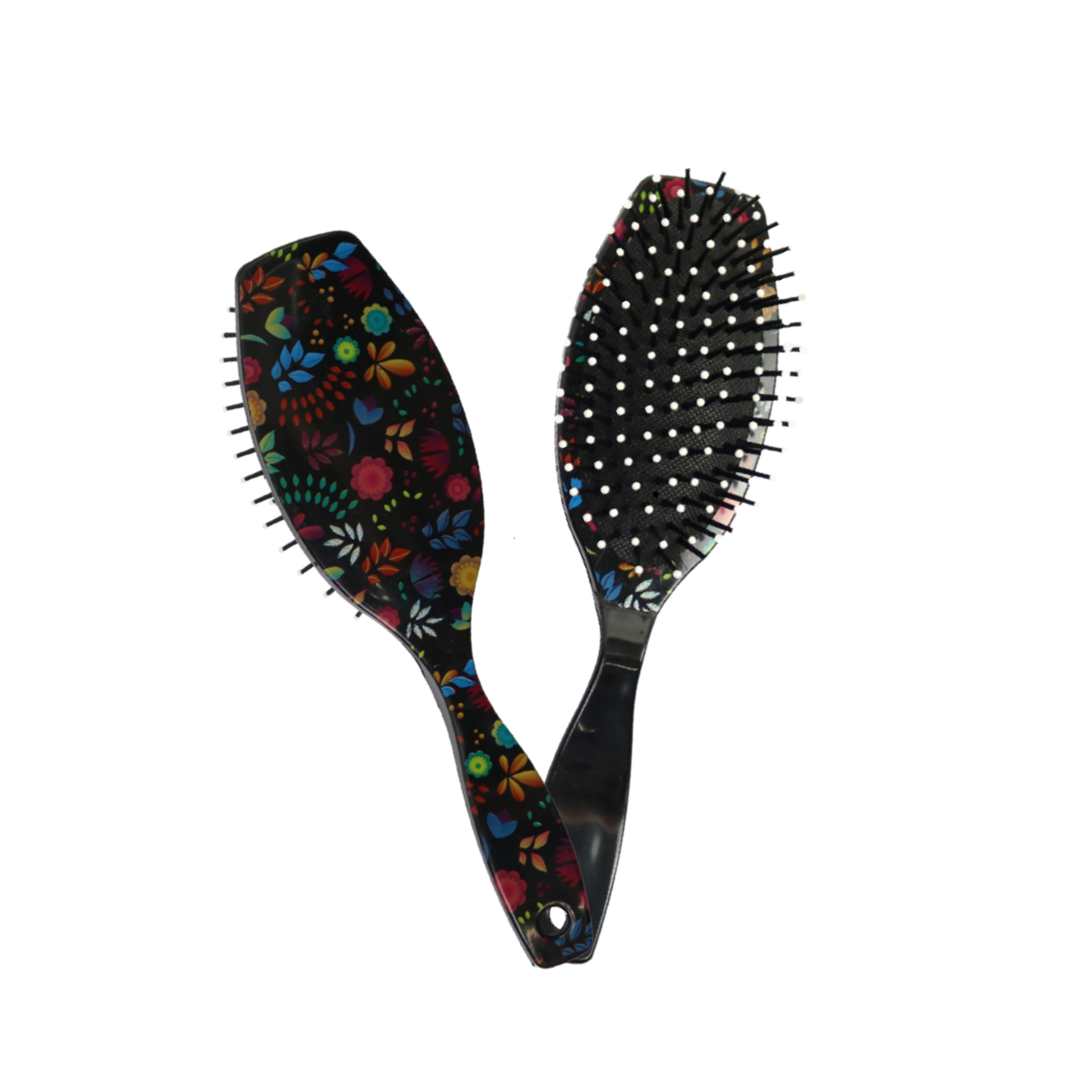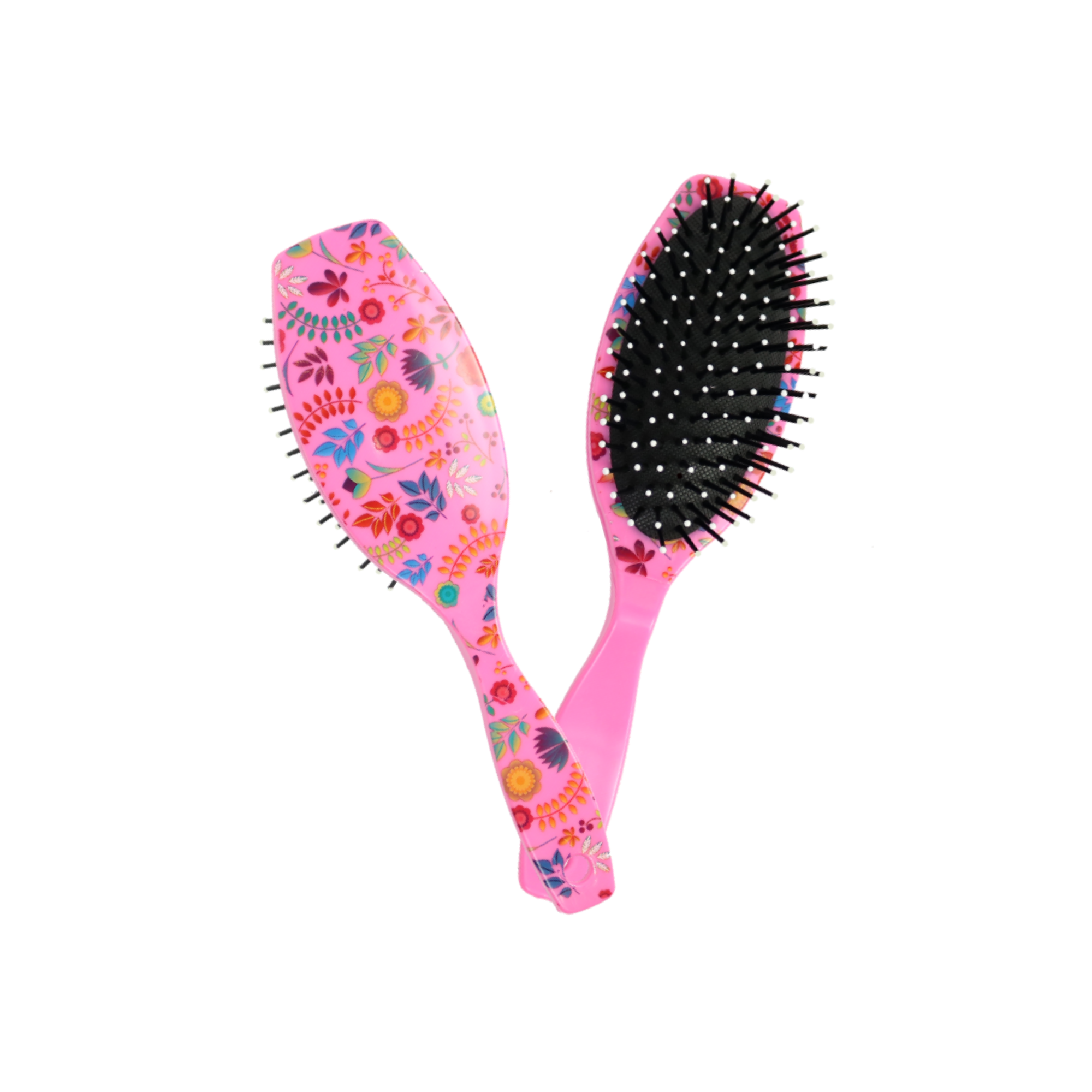 A Escova Oval Almofadada é ótima para pentear e desembaraçar cabelos lisos e ondulados. Massageia o couro cabeludo, pois sua almofada se molda ao couro cabeludo. Possui decoração no verso do cabo.