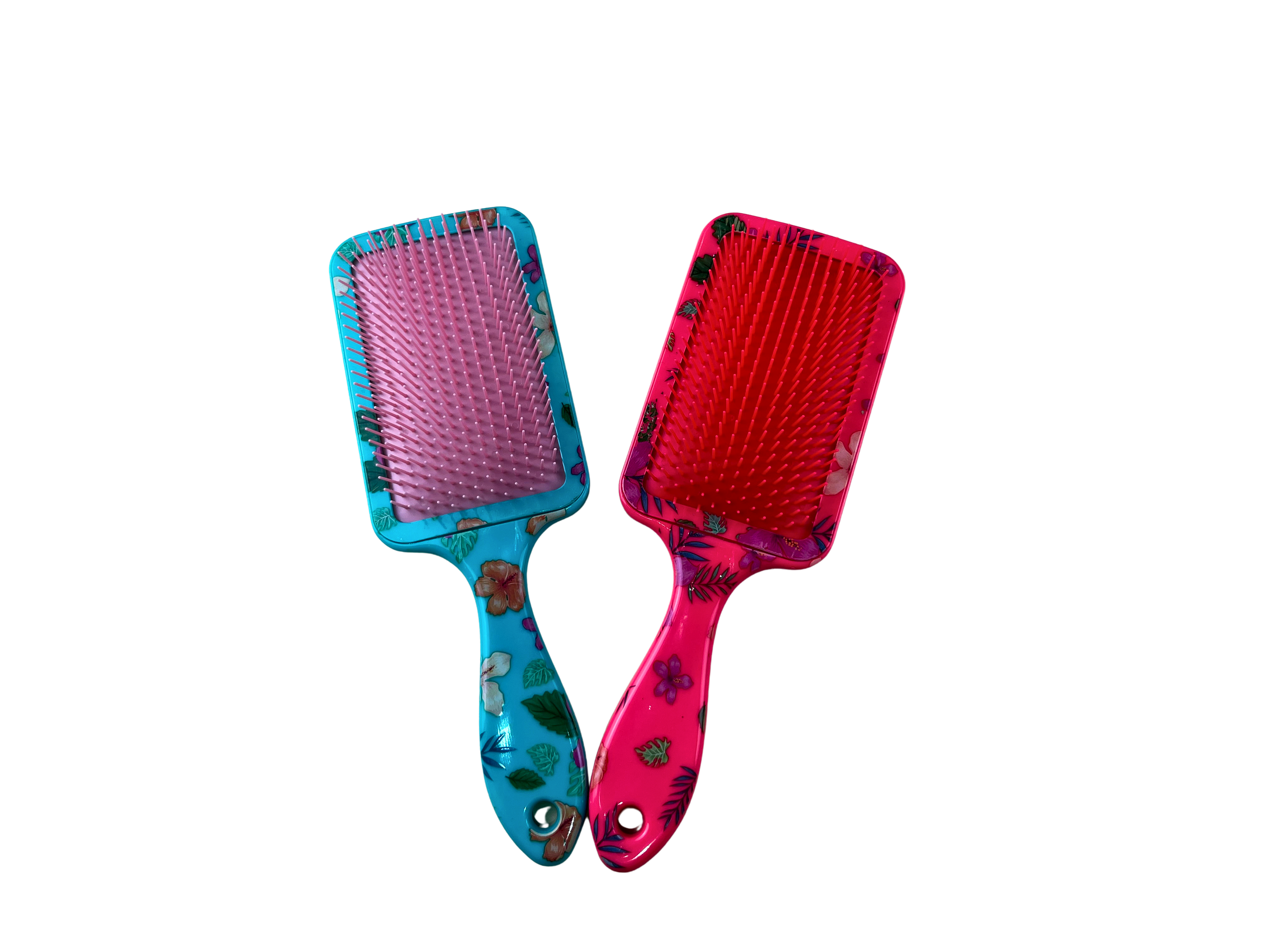 Escova almofadada com estampa decorativa exclusiva, ideal para pentear, desembaraçar e estilizar os fios com conforto. Possui base acolchoada que reduz a tração no couro cabeludo e cerdas metálicas com ponta protetora, que evitam quebras e proporcionam leve massagem durante o uso.