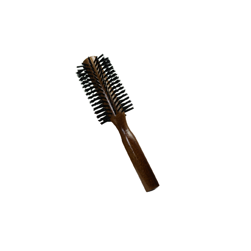 Escova redonda, com cabo em madeira, cerda em nylon 6.6 e cerdas naturais, aplicadas na diagonal. Ideal para alisar os cabelos em casa ou no salão. Dão movimento ao cabelo devido ao posicionamento diagonal das cerdas. Pode ser submetida ao calor do secador.