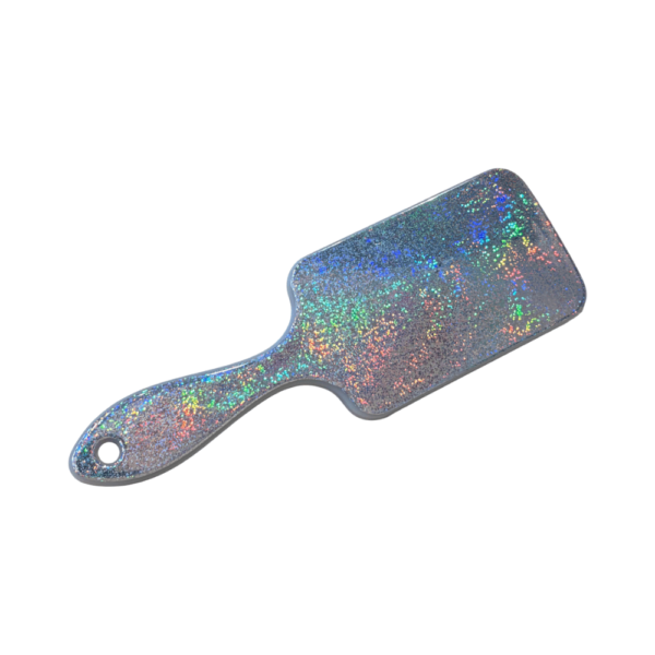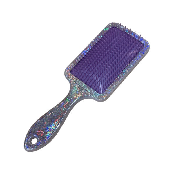 Escova almofadada fashion com cerdas flexíveis e ponta arredondada, que garante maior conforto ao pentear. O visual moderno com glitter holográfico traz estilo ao acessório, sendo ideal para uso diário, profissional ou como item de presente. Sua almofada interna proporciona um toque suave ao couro cabeludo e evita quebras dos fios.