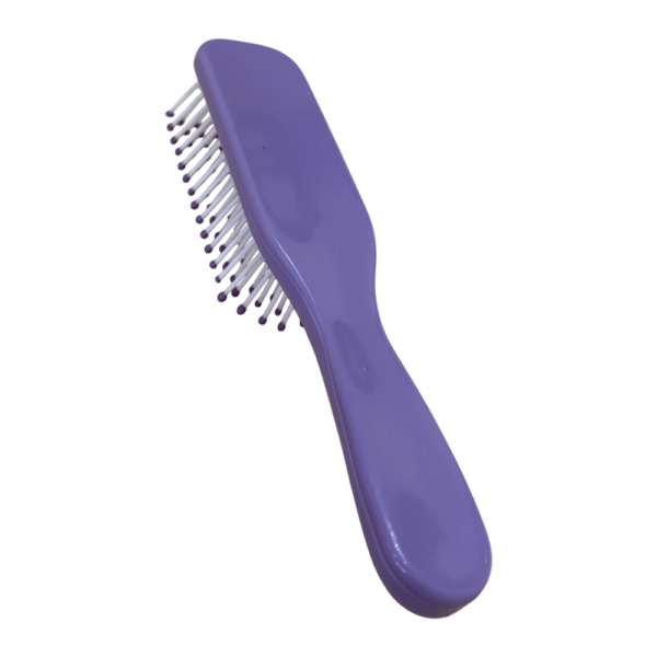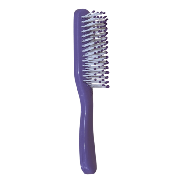 Escova mini com design anatômico e compacto, ideal para uso diário ou para levar na bolsa. Indicada para todos os tipos de cabelo, especialmente para crianças ou retoques rápidos ao longo do dia. Possui cerdas de nylon com pontas arredondadas que massageiam suavemente o couro cabeludo sem agredir os fios.
