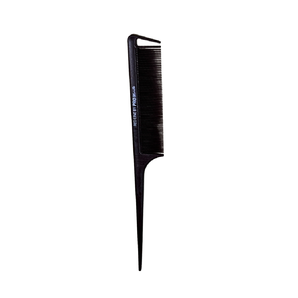 Pente profissional ideal para penteados, colorações e cortes. Resiste a altas temperaturas, até 180C, e possui alta resistência mecânica. Possui cabo metálico fino para separação de mechas e espaçamento pequeno entre os dentes.